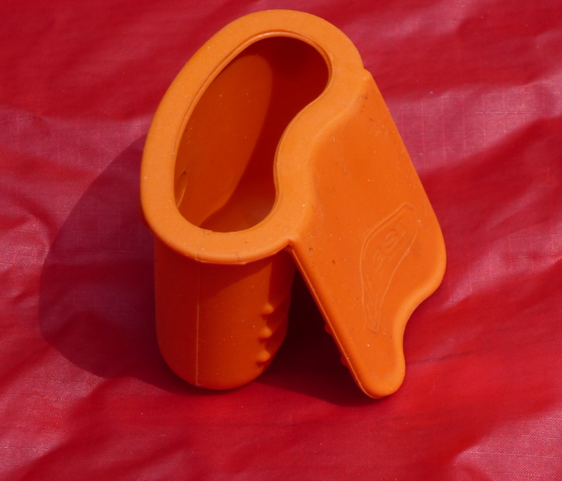 I spotted this item being offered as part of a GSI cook set. I did not need the rest of the cook set, so shopped around on the internet until I found a place to buy just the gripper. You insert two fingers in the cup part and grab the pot rim by holding your thumb against the flap. The silicon finger cup keeps your fingers out of hot water. As supplied, the gripper has a little magnet in the side, so it can be parked on your isobutane canister. I rarely use a canister and as an former sailor don’t like magnets around when compasses are in use. So I cut out the magnet to save a weight. The gripper is good for picking up anything hot including wind screens and stoves. At 0.4 oz. it is hard to beat for function and weight.
