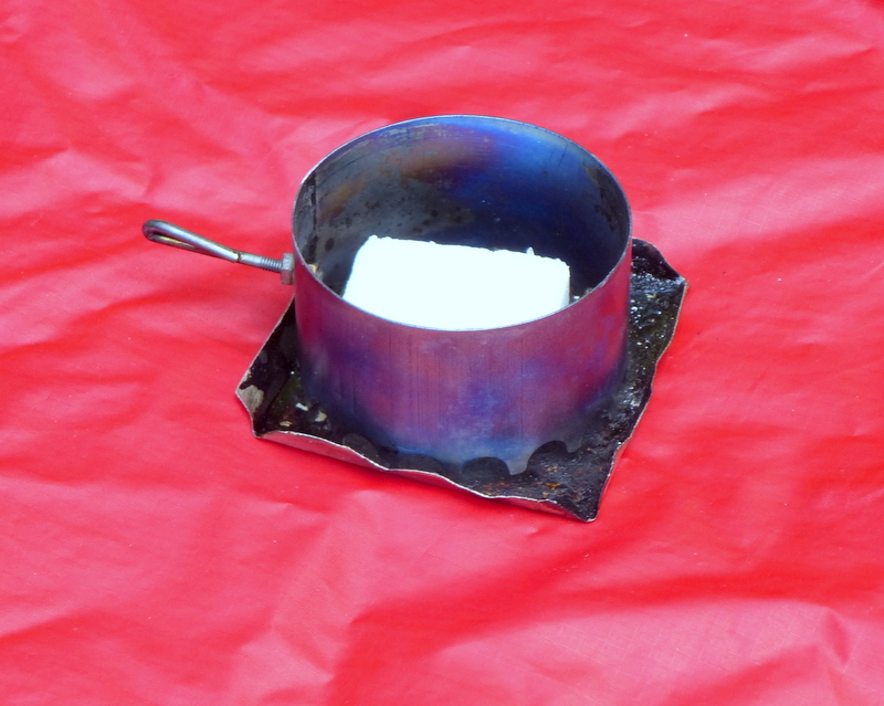 This device is covered in my Stoves and Fuel post. It really makes Esbit tablets work. Place it with the holes on the bottom to give a strong flame from the tablet for quick cooking. Turn it over to restrict the air flow to the tablet to get much longer burn times for simmering and baking. It’s titanium so it won’t melt or warp from all the heat. Another great idea from Jon Fong.