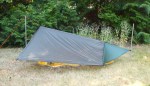 Tarp shelters are a common solution to ultralight camping. They are simple, light and easy to build. But they only provide a roof. Walls (bug protection) and floor are extra or missing. “Almost tarp” tents address this. My Six Moons design Night Wing tent is a good example.
