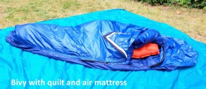 too cold for my quilt alone, but the new combination was warm. There was overnight condensation and again my bivy bag surface was wet in the morning, but nothing inside was even damp.