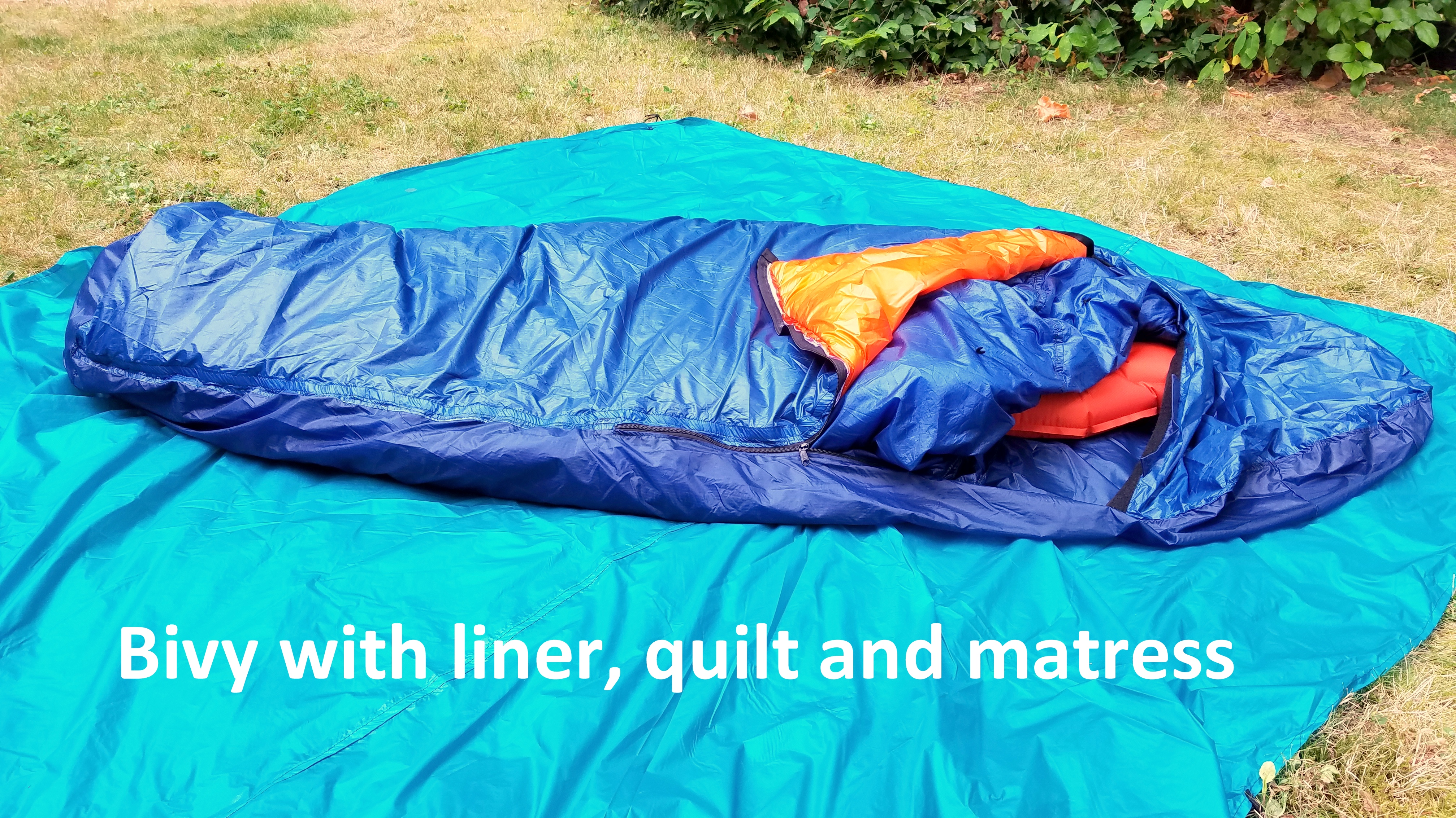 So I have a system that gives me condensation, drip protection and a little warmth (the bivy bag alone) for 9.2 oz. If I need bug protection while sleeping under a tarp, I will be carrying 13 oz. including the netting and Gear Tie. For cold weather, leaving the bug netting home and carrying the liner, I have a total of 17.4 oz., about an oz. heavier than my older bivy sacks, but much warmer. It’s a nice set of options for my local varied backcountry conditions.
